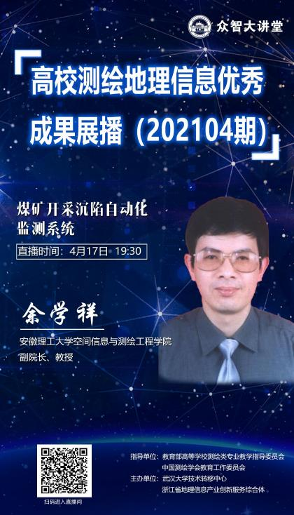 4月17日,空间信息与测绘工程学院副院长余学祥教授,受测绘教育“两委会”(教育部高等学校测绘类专业教学指导委员会、中国测绘学会教育工作委员会)邀请,担任“众智大讲堂-高校测绘地理信息优秀成果展播”(202104期)主讲专家。
