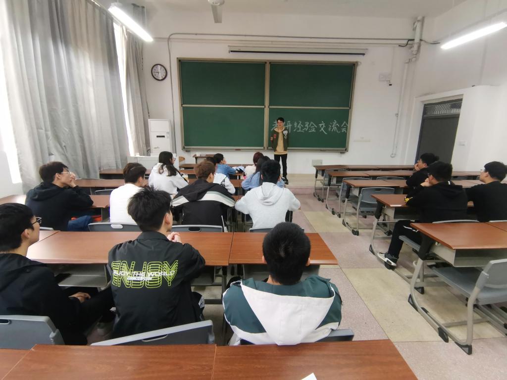会上,考研取得优异成绩的杨天宇等5位2017级学生分别介绍了自己考上的院校。从学习态度与考研心态等多个方面给了考研同学建议。在学习方面要每天都要不断的练习,不断完善自己的知识水平;在生活上,要调整作息情况,注意饮食和身体,保持良好的身体和精神状态;在心态上,要有积极的心理暗示,处理好考研后期和期末复习的关系,积极面对考研备考中的诸多压力,学会自我调适,悦纳自我。