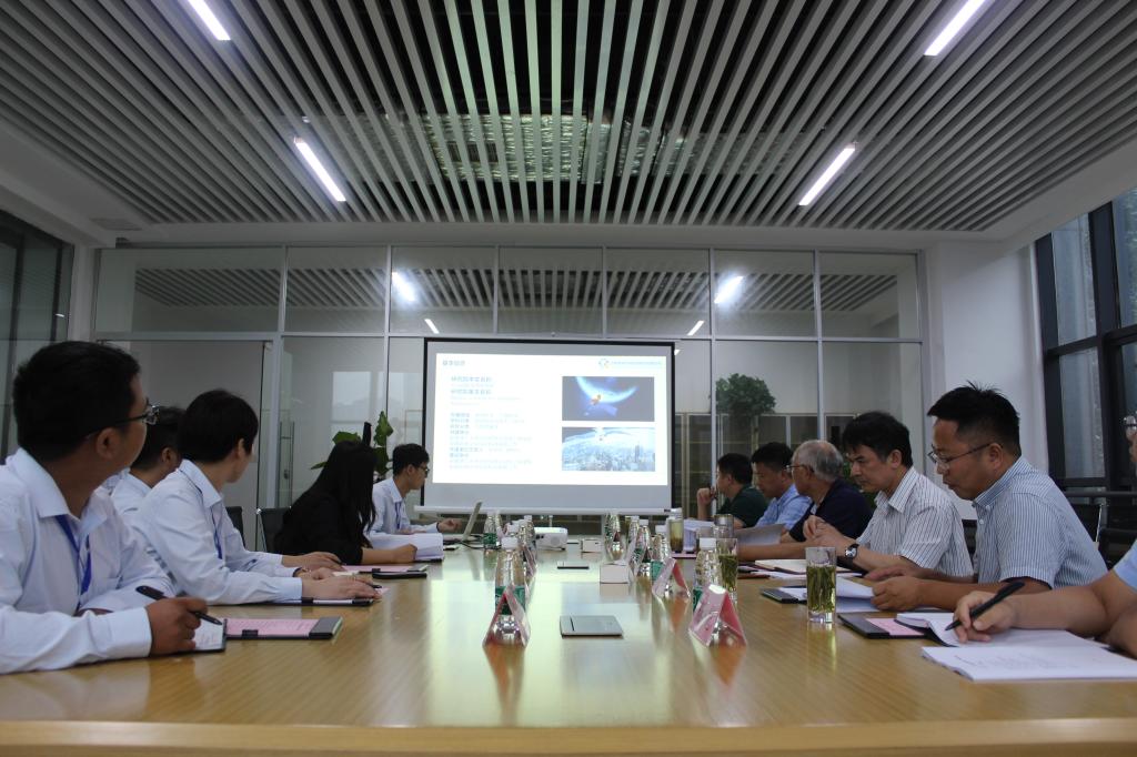 会中,盛鸣红致欢迎词,热烈欢迎郑明东等一行的到来,并从研究院基本信息,研究方向、主要内容及预期研究目标,队伍建设及人才培养计划,平台建设及经费支持,管理及运行机制,学术委员会组件及建设规划等7个方面做了详细汇报;余学祥介绍了研究院建设方案的推进过程;郑明东从研究院近远期目标规划、研究院定位,研究基础整合,研究内容聚焦与完善,组织实施中的开放基金设置与管理,学术委员会人员设置等方面给出了建设性指导性建议。与会人员就建设方案的合理性、存在的问题进行了深入讨论;此外,还讨论了以研究院为基础,建设产业创新联盟规划、联合申报科研项目等事宜。