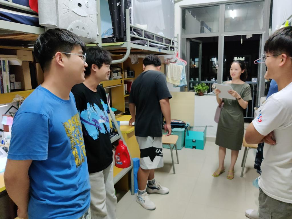 又值一年金秋开学季,按照学校2021年秋季学期开学返校工作安排,9月1日至3日,空间信息与测绘工程学院本科生、研究生陆续返校,为进一步了解学生返校后状态,激励同学们以更积极的精神面貌投入到校园学习和生活中,9月3日晚,学院党委副书记孟静及各年级辅导员深入学生宿舍,实地了解学生返校后的学习生活情况,为学生送去关心和问候。