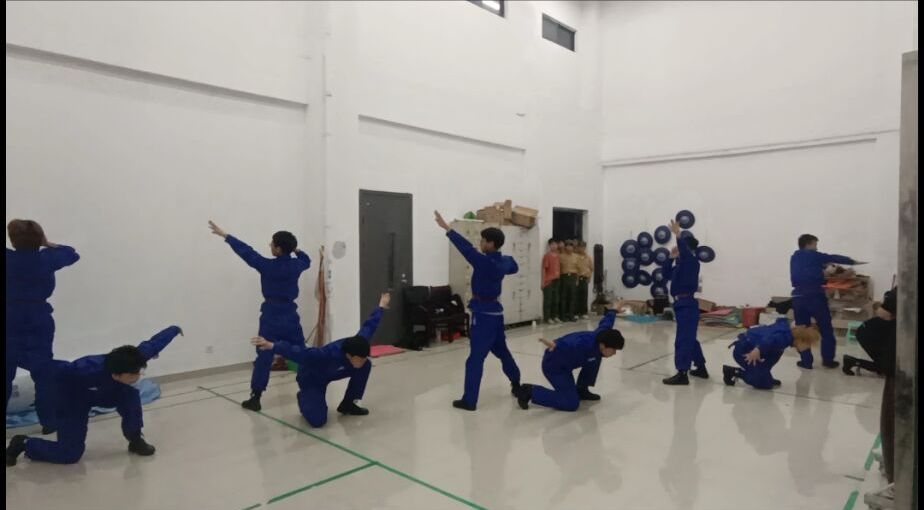 台上三分钟,台下十年功,只有精益求精,才会精彩纷呈。自三月中旬起,舞蹈队就开始为即将到来的比赛备战。每晚舞蹈队的队员们都会聚集在训练场,起、跳、翻、跃,汗水与青春交织到深夜。队员们基本上都没有舞蹈基础、没有基本功及表演经验。他们选择从基础练起,劈叉、下腰、扎马步……而后,从动作的学习到节奏的配合,到一个又一个连串动作,历经了几百上千次的磨合。舞蹈队中,不会侧翻地、技巧难以学会地大有人在,只有抽时间在训练场加强练习。一次不行,两次,经历不知多少次,从未放弃过,都咬牙坚持,互相帮助,共同改进,不断提高训练效率。这期间,由于疫情防控的需要,舞蹈队不得不暂停训练了三周时间。当时的大家心里如同一片死灰,那段时间他们看不到希望,大家甚至都产生过放弃的想法,便随着疫情态势的好转,一份比赛仍能举办的通知发了下来让他们重拾了希望,所有人没有抱怨,而是再一次投入到训练当中。舞蹈队的每一个成员,膝盖上、胳膊肘、手腕、脚腕、腰多多少少都受过伤,有的还是伤上加饬,但大家都觉得没有什么大不了,因为那份激情那份热血早已经冲走了肉体上的疼痛,取而代之的是高昂的精神面貌和坚定不移的意志。