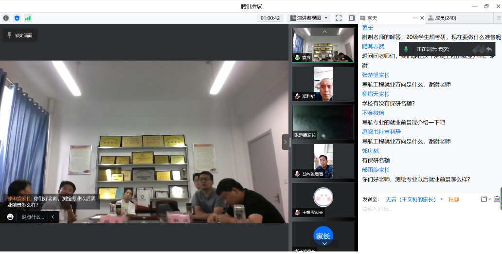 为切实加强学校和家庭间的联系,了解学生成长环境、思想动态以及校内外表现,推动家校间理解合作,共同促进学生成长。6月29日上午,空间信息与测绘工程学院开展2022年暑假线上家访活动。学院领导班子成员、系主任教师、专职辅导员、学生资助宣传大使,以及部分学生家长等240余人参加此次线上家访。