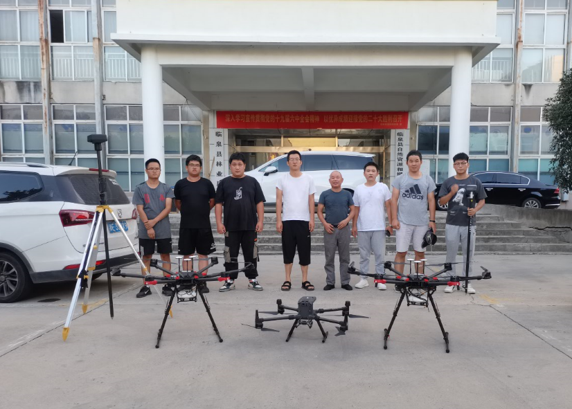 根据安徽理工大学乡村振兴定点帮扶工作领导小组(扩大)会议要求及临泉县自然资源和规划局工作需求,2022年8月4日,空间信息与测绘工程学院组织新入职教师谭浩博士、闵祥强博士及临泉籍研究生韩雨辰等3人,在浙江中海达空间信息技术有限公司工程技术人员姚一凡、张栋、李建军、何子威等4人协助下,携带一台大疆M300型无人机和两台大疆M600型无人机,赴阜阳市临泉县开展中心城区三维数字建模帮扶工作的第一阶段任务——无人机倾斜摄影测量。临泉县自然资源和规划局测绘科辛红主任积极配合帮扶工作组的各项工作。