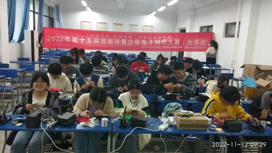此次比赛由淮南市科学技术协会主办,田家庵区科协、空间信息与测绘工程学院承办。大学生电子制作活动作为淮南市传统科技比赛项目之一,目的是创造崇尚科学、学习技术的良好氛围。本次比赛也充分调动了学院学生科技创新的积极性,培养了学生团队意识和动手能力。