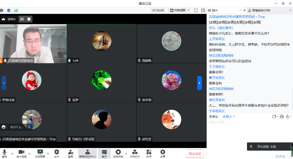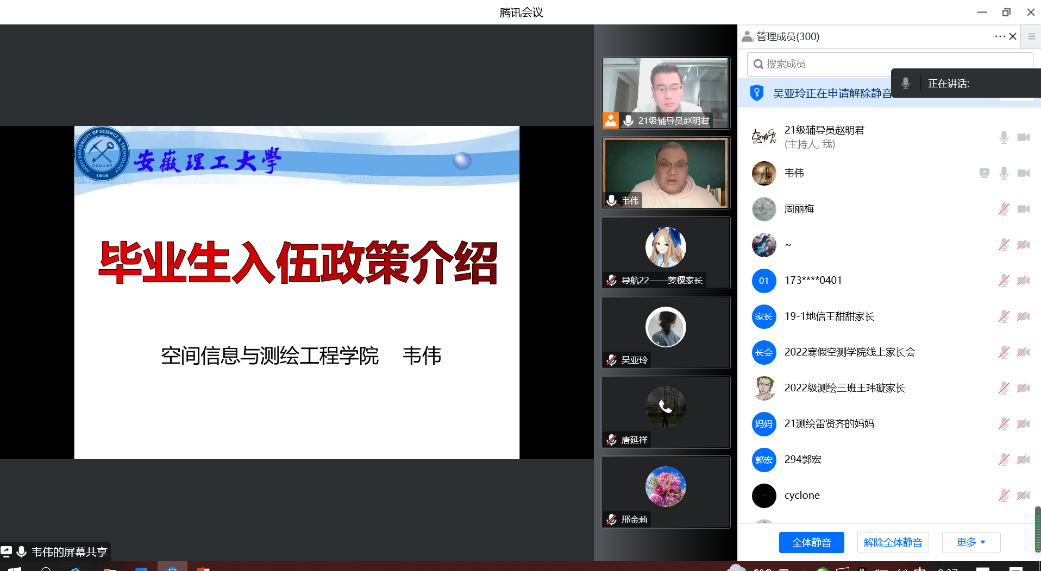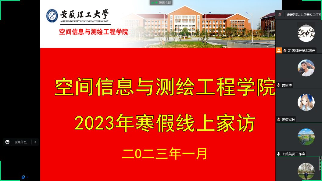 为进一步巩固家校联系、加强学生思想教育和心理关怀引导,推动家校间理解合作,共同促进学生成长。1月7日上午,空间信息与测绘工程学院通过腾讯会议平台开展了2023年寒假线上“面对面”家访活动,学院领导班子成员、系主任教师、专职辅导员、学生资助宣传大使,以及部分学生家长等300余人参加此次线上家访。