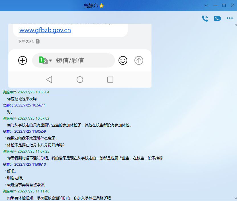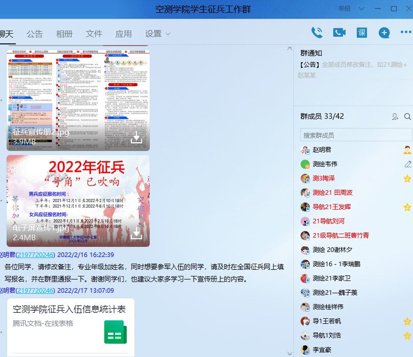 有一种大学叫军营,有一种青春叫无悔。一次选择,终身受益;一人入伍,全家光荣。为引导空间信息与测绘工程学院学生以家国情怀铸就责任担当,投身军营保家卫国。由于疫情期间的特殊情况,空间信息与测绘工程学院通过微信公众号推送发文、QQ群消息、谈心谈话以及线上政策宣讲等多种形式开展线上征兵入伍宣传活动。