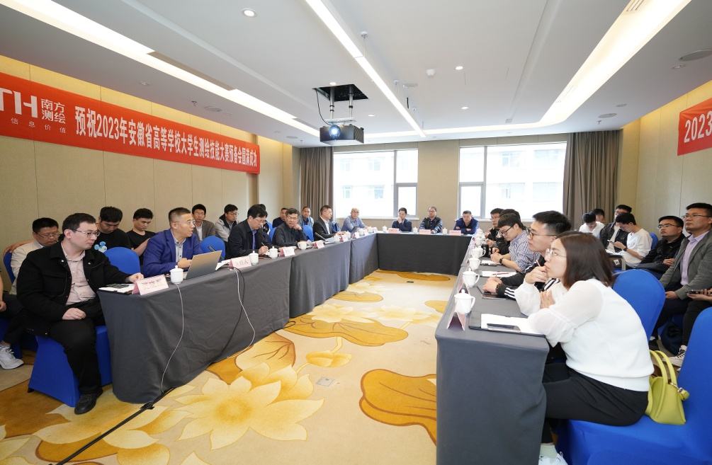 4月21日至22日,2023年安徽省大学生测绘技能大赛预备会在合肥天鹅湖大酒店承悦滨湖店召开。教育部高等学校测绘类专业教学指导委员会委员、南京工业大学李明峰教授,教育部高等学校测绘类专业教学指导委员会委员、合肥工业大学高飞教授,教育部高等学校测绘类专业教学指导委员会委员、中国测绘地理信息学会教育(工作)委员会副主任委员、广州南方测绘科技股份有限公司郭宝宇副总经理,中国测绘地理信息学会教育(工作)委员会委员、中国矿业大学张书毕教授,合肥工业大学、安徽大学、安徽理工大学、滁州学院等安徽省内14所院校、企业领导和专家代表等50余人出席会议。会议由安徽理工大学空间信息与测绘工程学院院长余学祥教授主持。