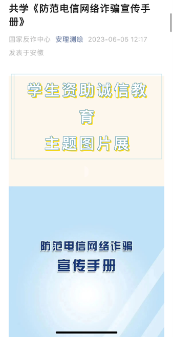 学院进一步加强宣传力度,通过微信公众号、网站、QQ群等线上方式,广泛宣传资助政策、金融知识、征信知识等,扩大资助诚信教育活动的覆盖面。引导学生讲诚信,守信用,树立良好的征信观念和科学理性的消费观,学习珍爱信用,保护自身权益。