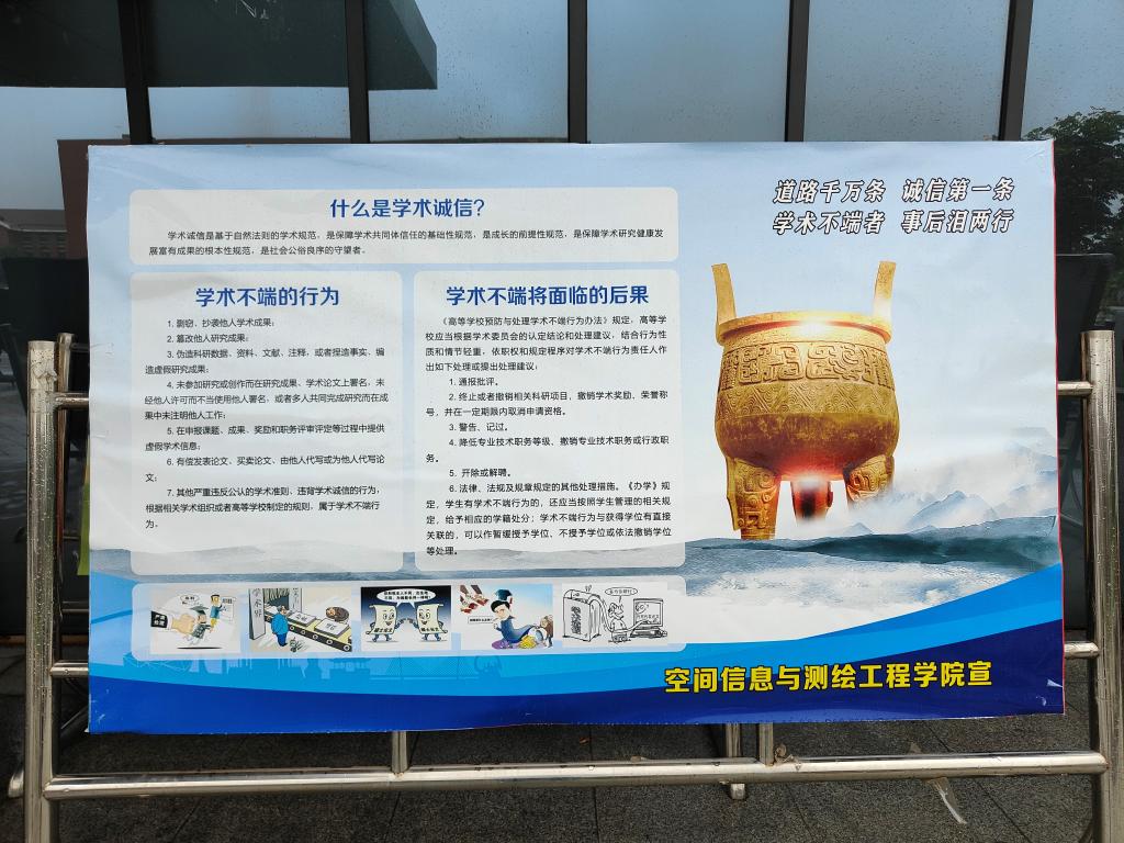 为加强科研诚信建设,严明学术纪律,规范学术行为,引导广大师生遵守学术规范、坚守学术诚信,营造求真务实、开拓创新的学术氛围。6月9日到6月18日空间信息与测绘工程学院采用展板宣传、文件学习等多种形式开展科研主题教育活动。