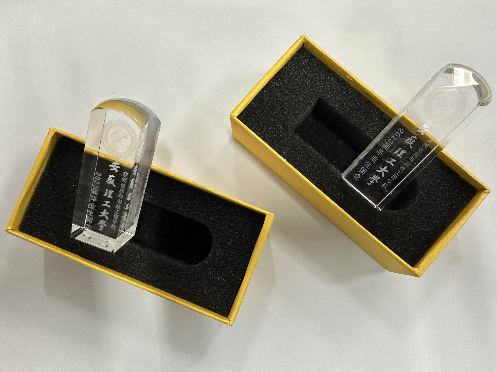 纪念印章套装含礼盒、印章各一,印章正面为学校校徽、校名,印面为学生姓名,寓意着安理见证了毕业生们的青春岁月,引领着莘莘学子奔赴锦绣前程。空间信息与测绘工程学院五月份就开始筹备采购、设计毕业生纪念品,每一处细节都寄托着对毕业生的深情和祝福。