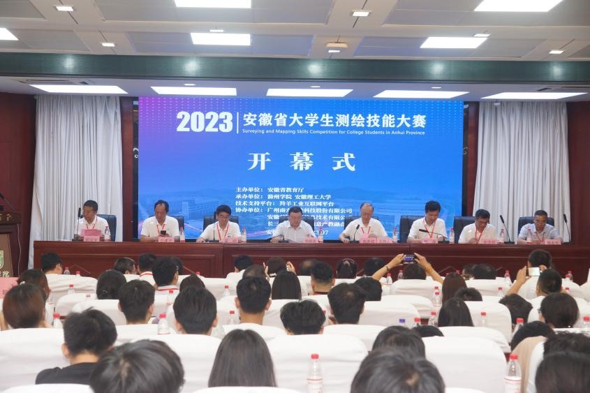 7月14日下午,由安徽省教育厅主办,安徽理工大学和滁州学院共同承办,广州南方测绘科技股份有限公司、安徽前锦空间信息科技有限公司、长三角测绘地理信息产教融合联盟协办,羚羊工业互联网平台支持的2023年安徽省大学生测绘技能大赛在滁州学院隆重开幕。