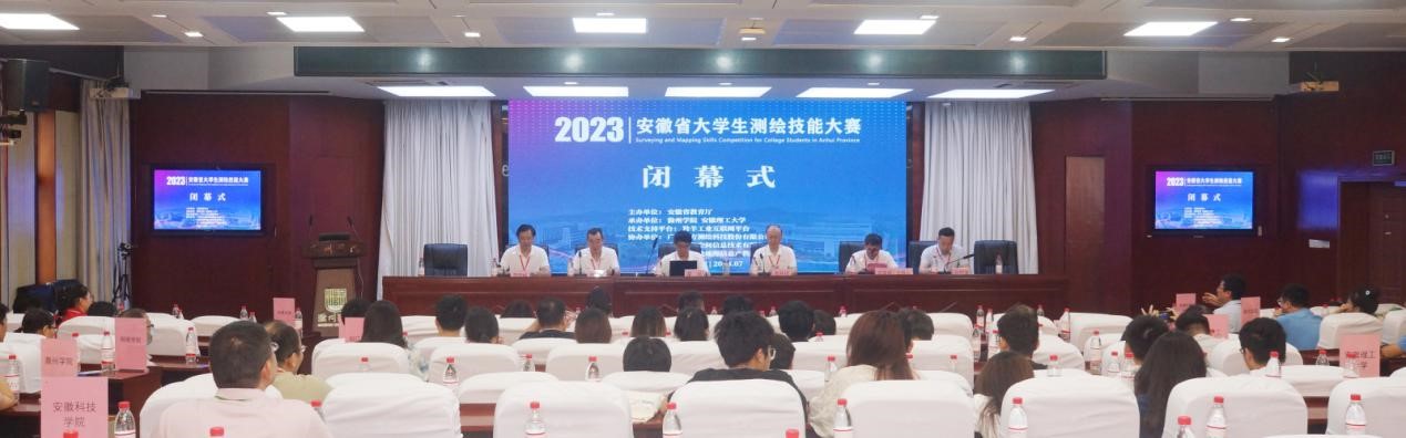 教育部高等学校测绘类专业教学指导委员会委员、中国矿业大学高井祥教授,教育部工程教育专业认证专家、解放军战略支援部队信息工程大学翟翊教授,教育部高等学校测绘类专业教学指导委员会委员、河海大学岳建平教授,教育部高等学校测绘类专业教学指导委员会委员、河南理工大学魏峰远教授,教育部高等学校测绘类专业教学指导委员会委员、南京工业大学李明峰教授,滁州学院地理信息与旅游学院党委书记白绍业,中国测绘地理信息学会教育工作委员会委员、安徽理工大学余学祥教授等参加了闭幕式。来自合肥工业大学、安徽大学、安徽农业大学、安徽建筑大学、安徽理工大学等17所省内高校的395支参赛队伍的领队、指导老师、参赛选手和大赛工作人员通过线上与线下参加了闭幕式。闭幕式由余学祥教授主持。