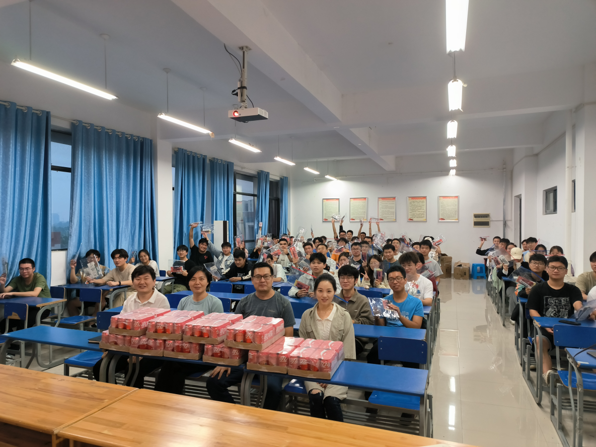 炎炎夏日送清凉,浓浓关怀沁人心。为进一步加强学院学风建设,营造勤奋向上的学习氛围,也为了切实帮助暑期留校考研学子坚定考研目标、缓解备考压力、增强必胜信心,8月28日,空间信息与测绘工程学院党委副书记孟静、科研院长赵兴旺、辅导员一行在学院512教室慰问暑期留校学生,并为同学们发放营养物资,送上关心和祝福。