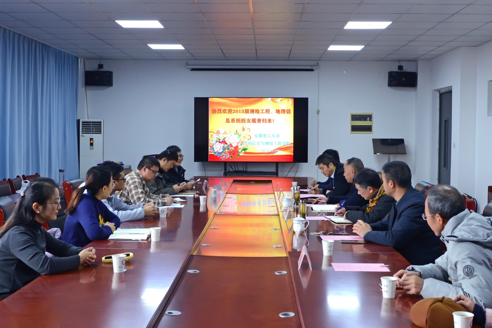 11月12日上午,空间信息与测绘工程学院测绘工程专业、地理信息系统专业2013届校友毕业十周年座谈会在求本楼北503会议室举办。校党委常委、副校长张平松教授应邀出席座谈会并讲话。校合作发展处负责人、学院领导班子成员、教师代表等参加了座谈会。座谈会由测绘工程2013届校友、国汽大有时空科技(安庆)有限公司总监朱明明主持。
