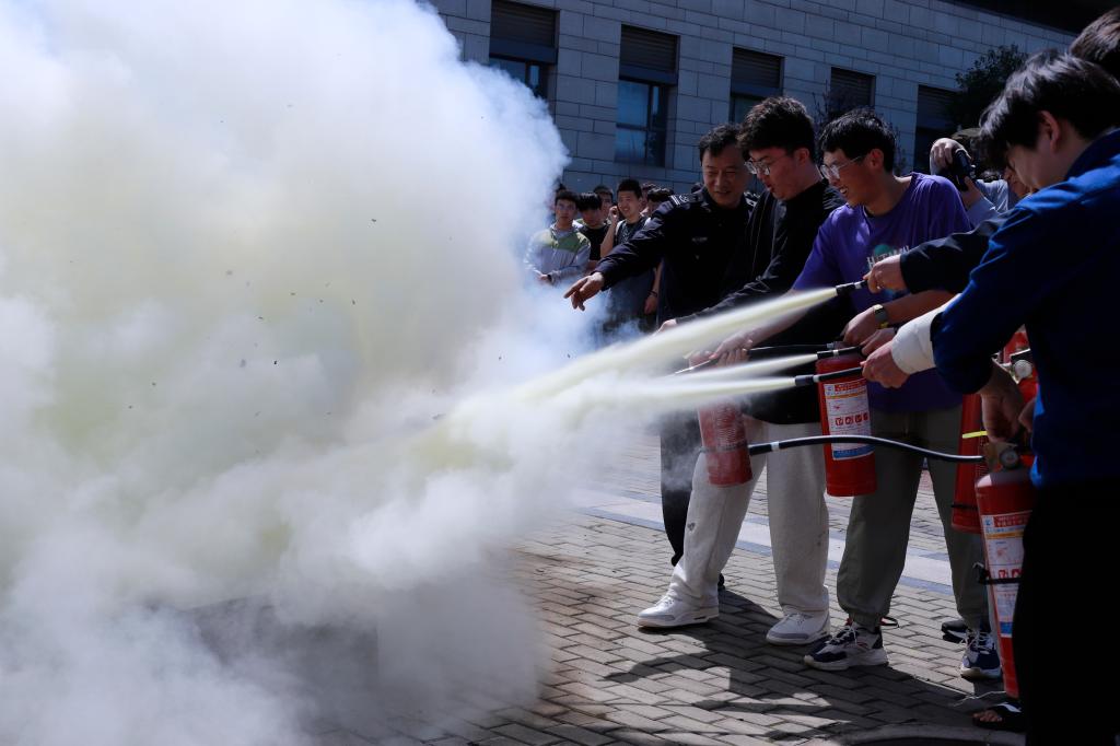 一起学消防,安全记心间。在学生宿舍广场前,保卫处消防管理科彭广峰老师结合校园中的真实火灾案例,通过列举南京雨花台区居民楼电瓶车自燃引起的火灾等大量消防事故与消防安全隐患案例,对出现在实验室、学生公寓、停车场所等处的常见安全隐患进行剖析,细致讲解如何识别消防安全隐患和化解的方法。培训过程中,彭广峰老师向同学们演示了灭火器的使用方法,并指导学生代表使用灭火器进行现场灭火演习。