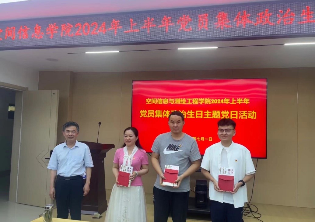 红船依旧,共赴山河。为庆祝中国共产党建党103周年,7月1日下午,空间信息与测绘工程学院在学院北204报告厅开展“集体政治生日”主题党日活动。学院党委委员、各党支部书记、入党时间在上半年的教工党员、新发展的学生党员参加了活动。