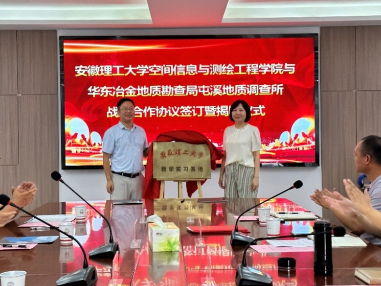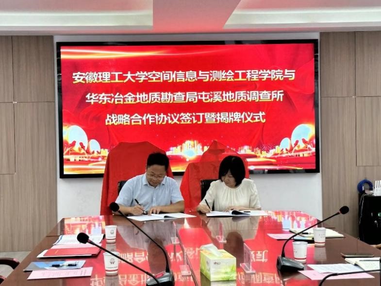 8月13日上午,空间信息与测绘工程学院副院长王磊一行4人赴华东冶金地质勘查局屯溪地质调查所(简称“华冶局屯调所”)走访调研并签订战略合作协议。华冶局屯调所所长秦建芳、副所长方涛、综合办副主任张玉玲、测绘院院长黄政、测绘院高级工程师江传奇等出席了会议。会议由方涛主持。