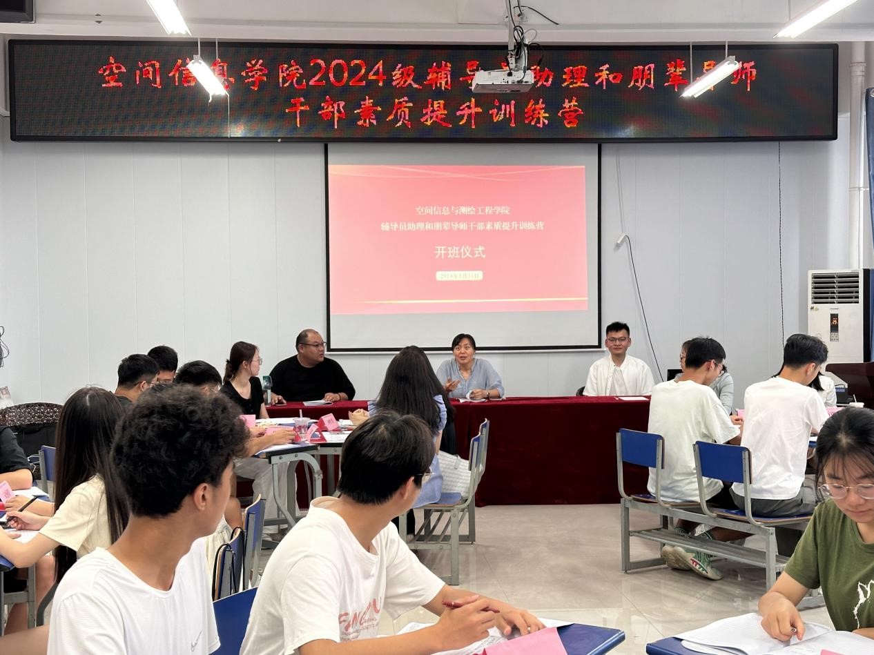为推进班级凝聚力建设,加强学院学生思想政治教育队伍建设,空间信息与测绘工程学院于8月31日-9月1日在求本楼北512会议室举办2024级新生辅导员助理和朋辈导师干部素质提升训练营,学院党委副书记孟静出席并主持开班仪式。