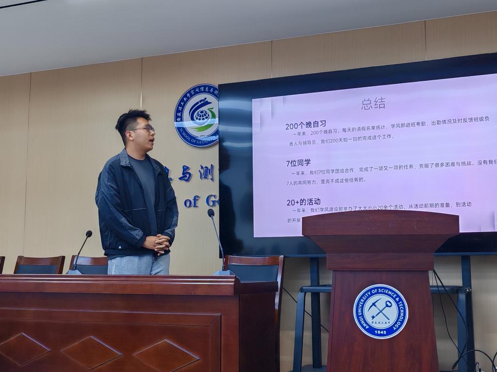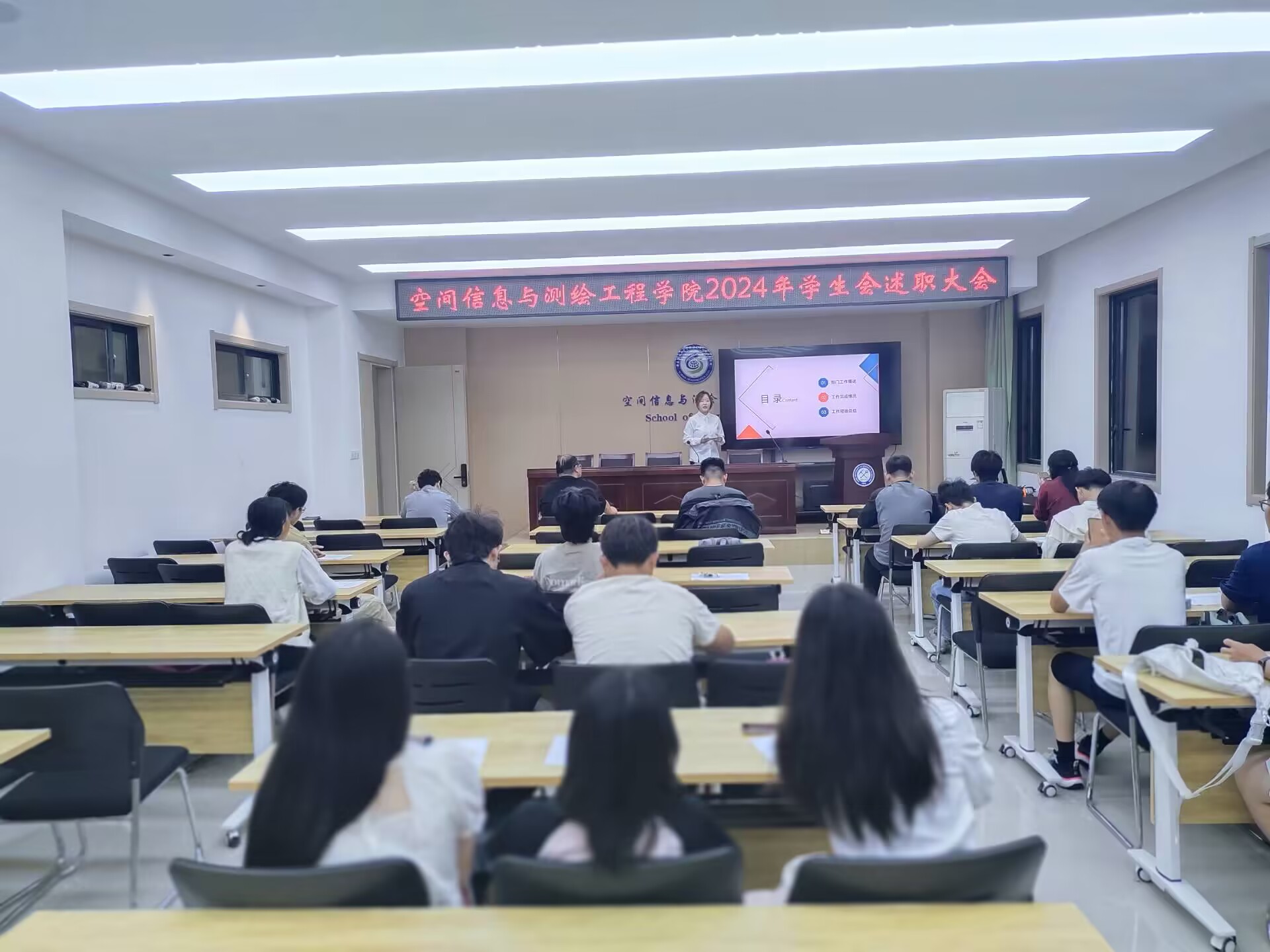 为切实提升学院团学组织学生骨干的任职履职能力,更好地服务学校“潜心立德树人”的核心任务,9月24日晚,空间信息与测绘工程学院团委在学院楼北204召开2023-2024学年度团学组织述职评议会。院党委副书记孟静、院团委书记、辅导员、学生代表参会。学院团学组织各部门学生干部参加述职。