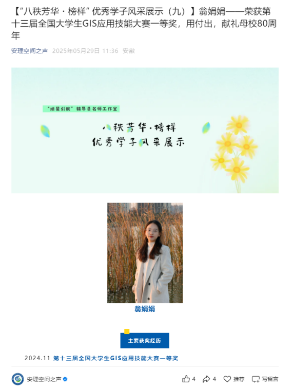 “八秩芳华,榜样力量”熠熠生辉:值此学校八十华诞之际,隆重推出“八秩芳华,榜样力量”优秀学子风采展示系列活动。通过学院公众号深度报道,立体化展现了在自强不息(含优秀受助代表)、志愿服务、学术科研等领域涌现出的先进典型。这些身边榜样的事迹,特别是在诚信、奋斗、感恩方面的闪光点,为全院学生树立了学习标杆,极大激发了见贤思齐、奋发进取的内生动力。