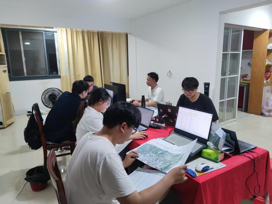 6月初,实践团队在指导老师和同事的帮助下学习了ArcGIS,Global Map,Photo Map等软件应用和外业测量仪器的使用培训。6月中旬,参与了第一次外业测量项目“2025年温岭市1:500测绘更新项目”,在炎炎夏日,实践团队仍然在户外坚守一线,头顶似火的骄阳,脚踏滚烫的大地,用辛勤的汗水诠释着责任与担当,为项目作业提供准确的数据和技术支撑。