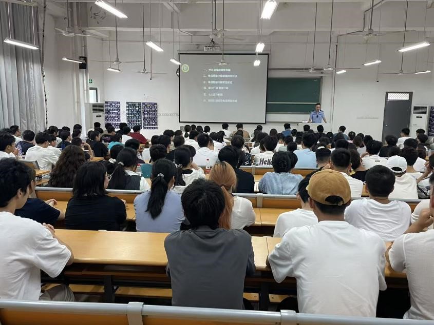 为提升2025级新生安全防范意识,保障学生财产安全,9月10日上午,空间信息与测绘工程学院特邀淮南市公安局山南新区分局法制科二级警长王远,在天工105教室为2025级新生举办了一场防范网络电信诈骗专题讲座,为同学们上了一堂生动的“大学安全第一课”。