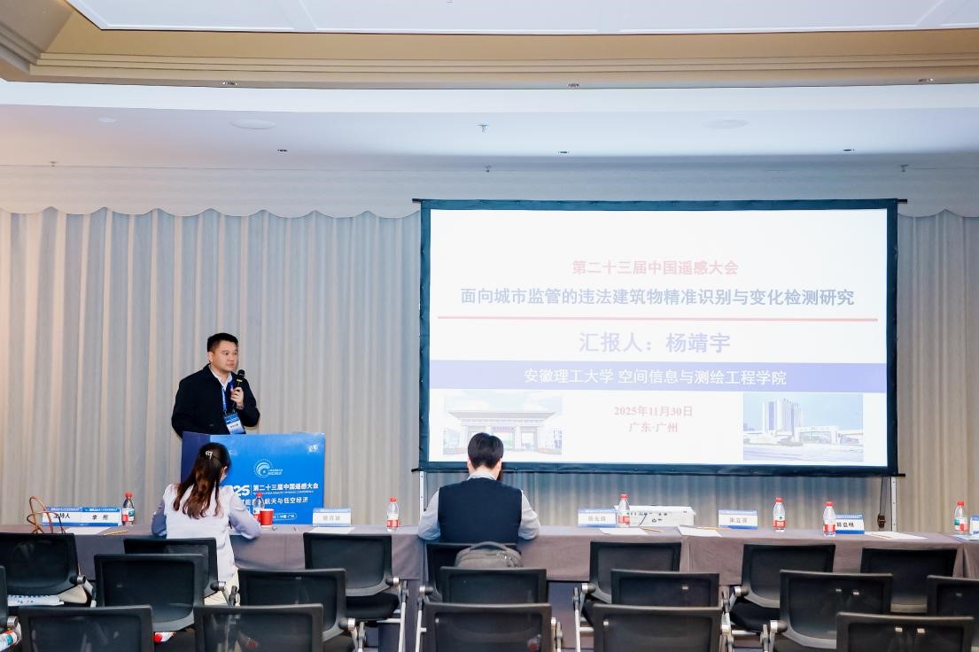 会议期间,杨靖宇作了题为“面向城市监管的违法建筑物精准识别与变化检测研究”的报告,介绍了团队的科研成果,同与会专家进行了深入交流与讨论。同时,参加多场专题研讨,和领域内专家学者展开深度对话,有效拓宽了学术视野,进一步增强了学术自信。