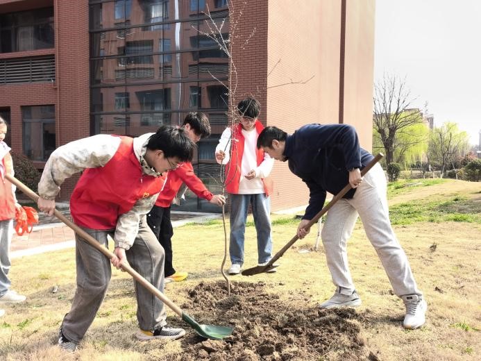 活动现场,学院领导与志愿者们一同投入到植树劳动中,挥锹铲土、扶苗填坑、提水浇灌,认真完成每一道工序。在大家的默契配合下,经过一个多小时的劳动,一株株新栽种的树苗在风中挺立,为春日的校园增添了一片生机勃勃的新绿。学生们表示,这不仅仅是一次体力劳动,更是一堂生动的劳动教育实践课,通过亲手栽种树苗,真切体会到了劳动的价值,也在志愿服务中加深了对雷锋精神的理解。