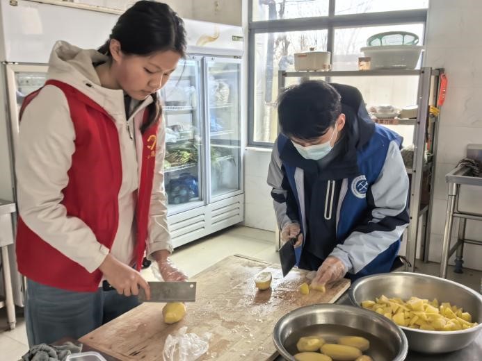 部分志愿者们走进厨房,在工作人员指导下协助准备午餐,洗菜、切菜、配菜,每一道工序都认真细致。还有志愿者围坐在老人身边,小心翼翼地为他们修剪指甲,耐心询问身体状况和生活起居。并为敬老院送上了面条、水果等生活用品,表达对老人们的美好祝福。