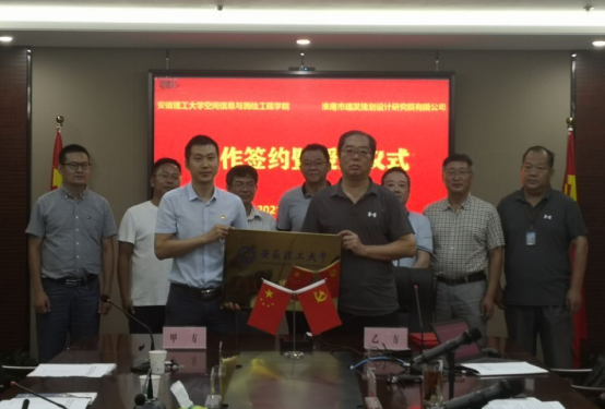 8月21日下午,空间信息与测绘工程学院院长余学祥、党委副书记(主持工作)范洪喜、副院长王磊、副院长赵兴旺一行4人赴淮南市建发规划设计研究院有限公司,签订合作协议。淮南市建发规划设计研究院有限公司总经理吴旻、副总经理岳超、副总经理李伟、测绘队队长鲁传灿、测绘队主任工程师李延山出席了签约仪式,会议由副总经理岳超主持。