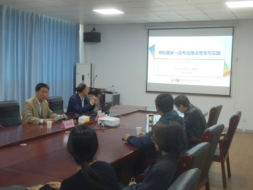 4月28日下午,受空间信息与测绘工程学院邀请,国家级教学名师、国务院政府津贴获得者、中国矿业大学高井祥教授到学院作题为“测绘国家一流专业建设思考与实践”的报告,学院党委书记吴军、院长赵志根、党委副书记刘瑞、副院长余学祥、副院长王磊及部分专业教师参加了报告会。报告会由院长赵志根主持。
