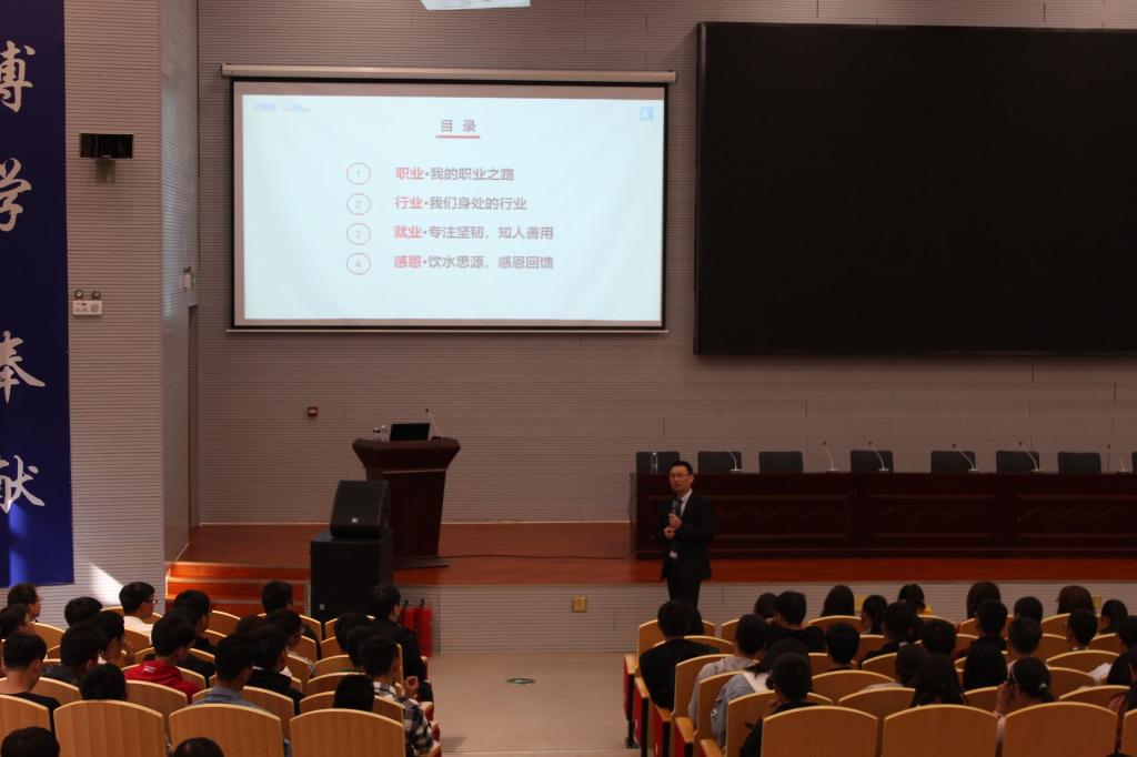 邾凯结合自身经历,从“职业、行业、就业、感恩”四个方面分享自己对于测绘行业的认识以及职业生涯的感悟;向学生介绍了测绘行业的应用前景以及发展方向;测绘行业与“大数据”的密切关系,且目前行业已经从数字化测绘时代进入到信息化测绘时代。