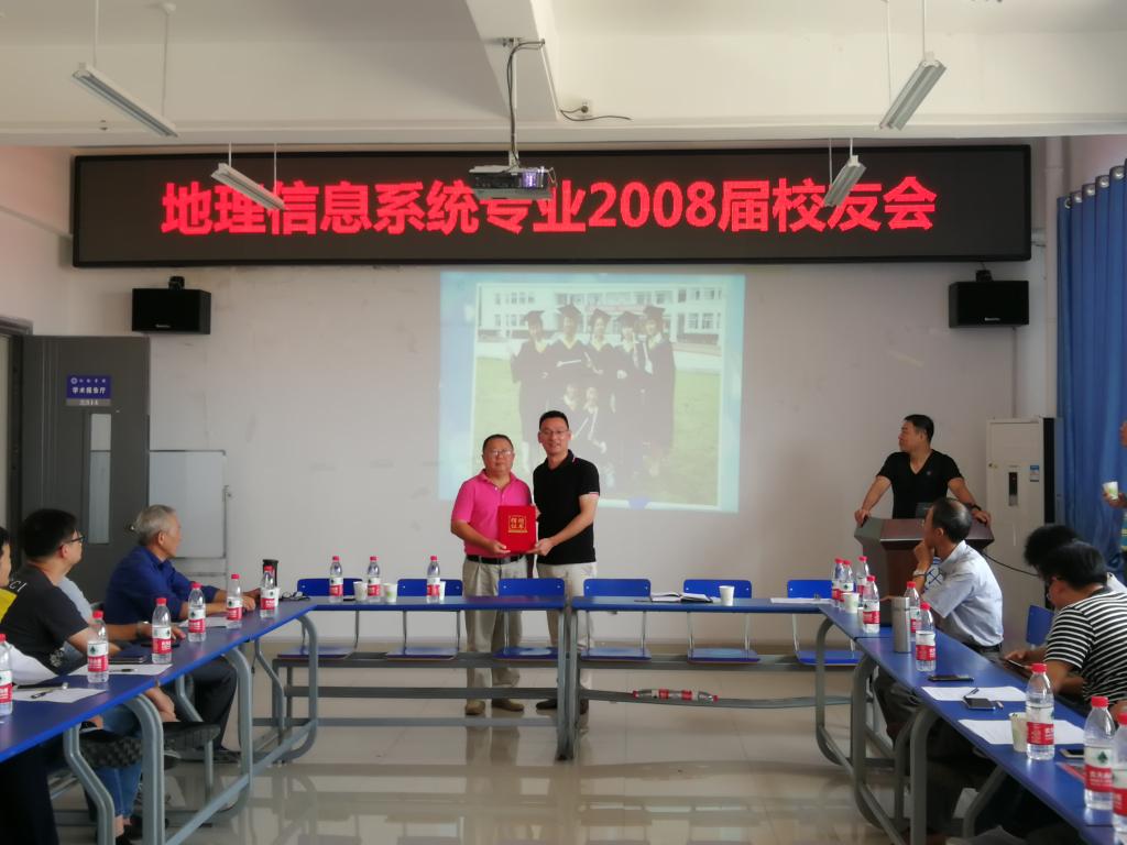 邾凯代表08届地理信息系统校友向学院捐赠了一台历史近百年的老式经纬仪,吴军代表学院接受捐献。