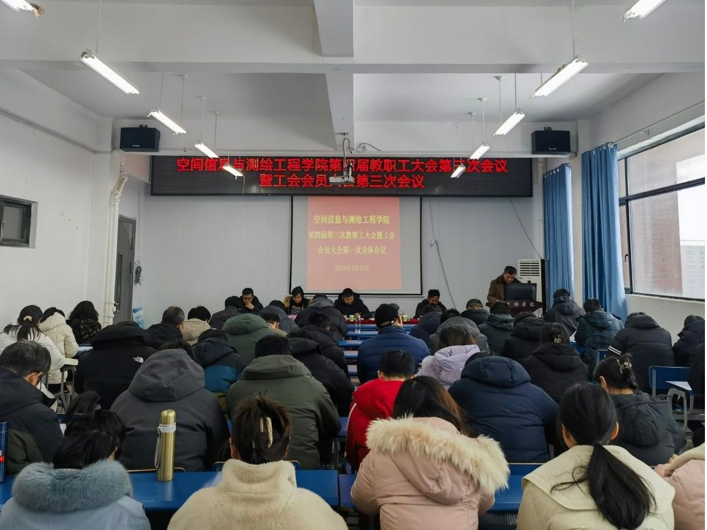 2月22日下午,空间信息与测绘工程学院第四届三次教职工大会暨工会会员大会在求本楼北512报告厅隆重召开,学院领导班子成员、全体教职工参加会议。会议由学院党委书记范洪喜主持。