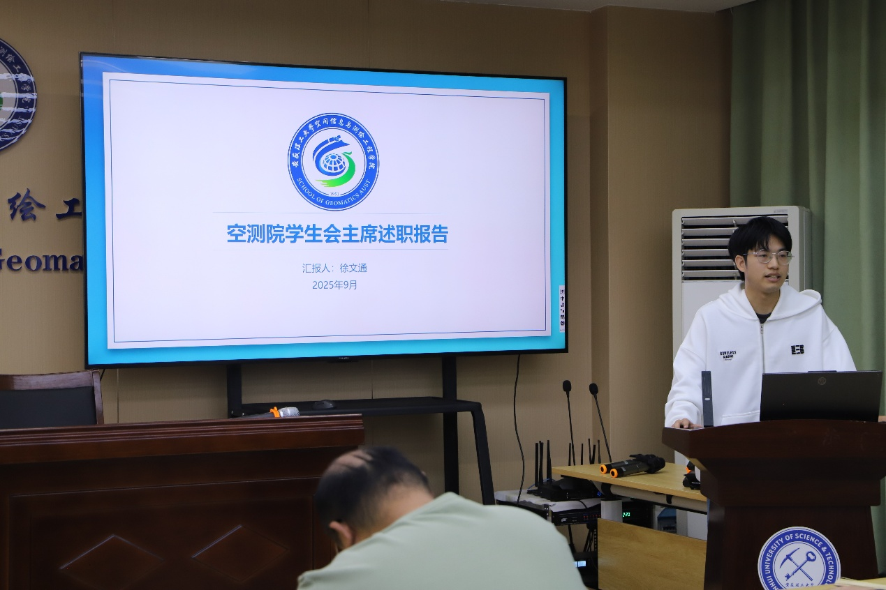 为切实提升学院团学组织学生骨干的任职履职能力,更好地服务学校“潜心立德树人”的核心任务,9月23日中午,空间信息与测绘工程学院团委在学院楼北204召开2024-2025学年度团学组织述职评议会。院党委副书记孟静、院团委书记、辅导员、学生代表参会。学院团学组织各部门学生干部参加述职。